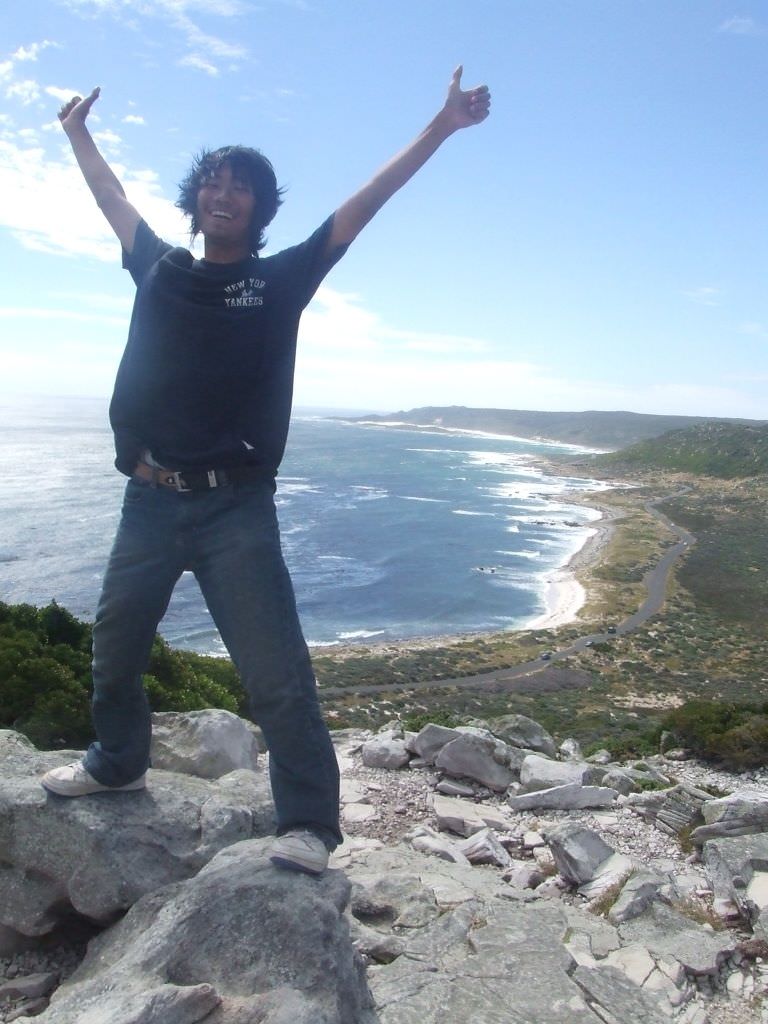 南アフリカ、喜望峰。アフリカ大陸最南端到達の瞬間。