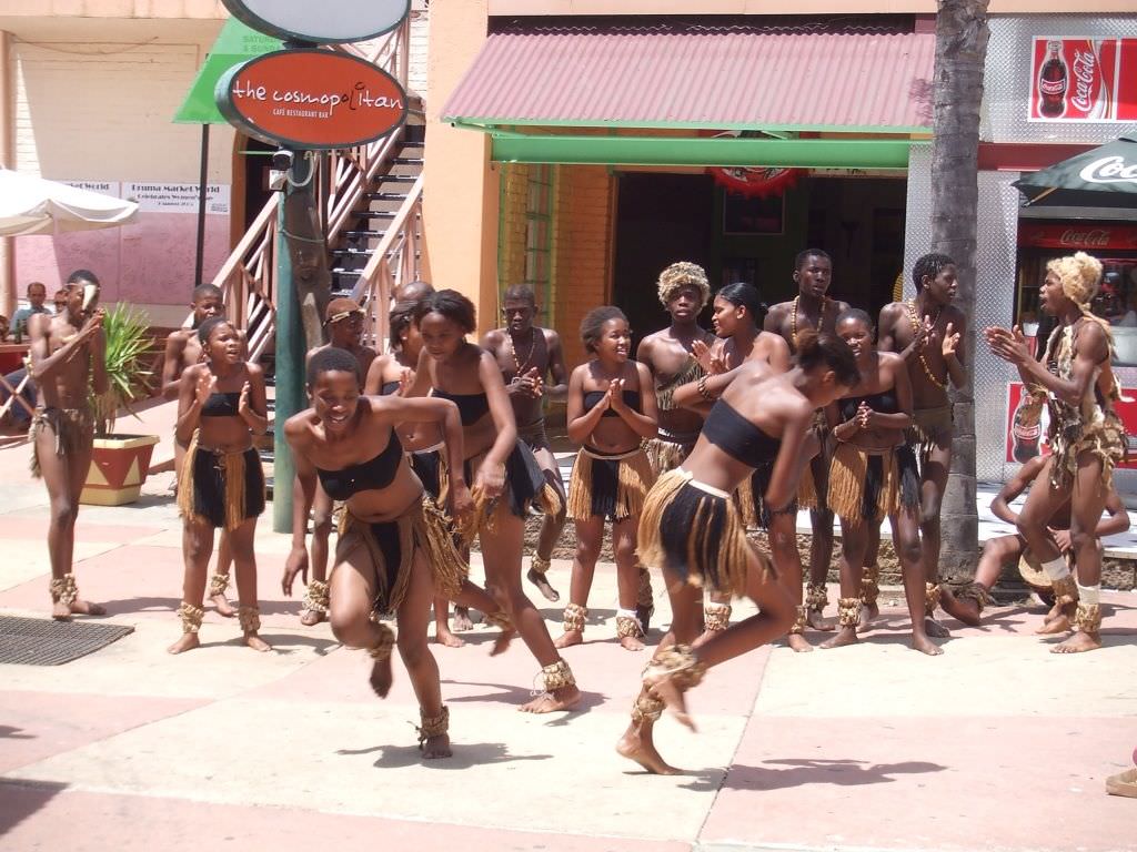 南アフリカのショッピングモール、伝統的ダンスショー。