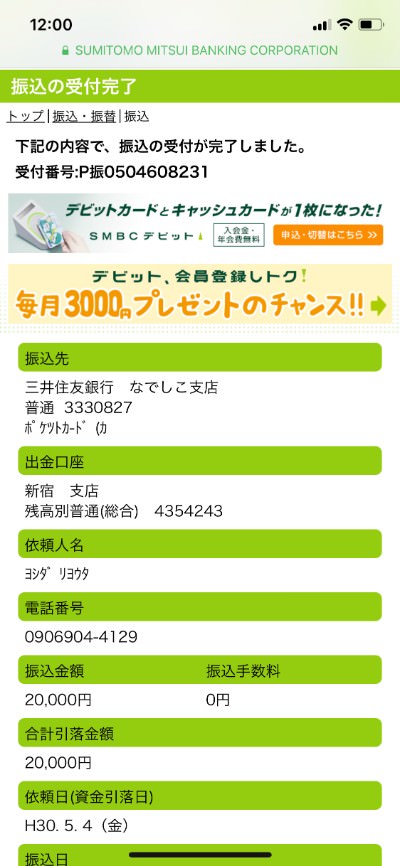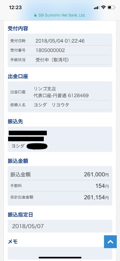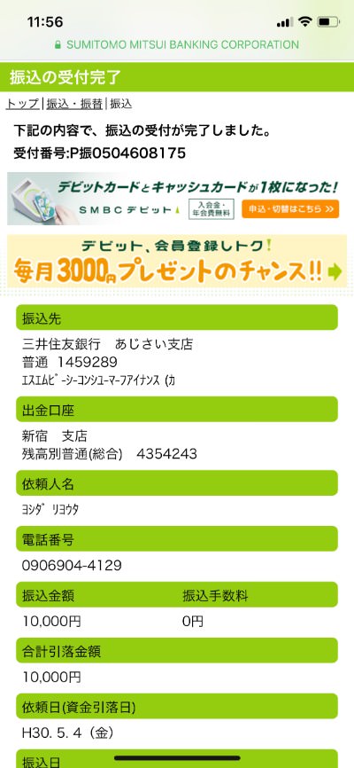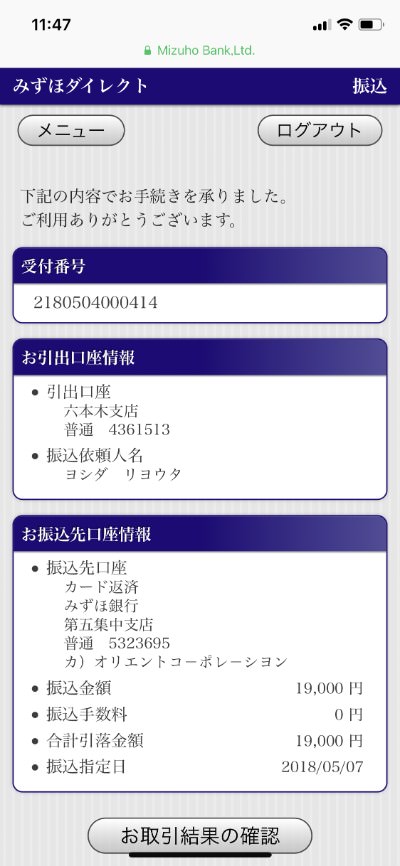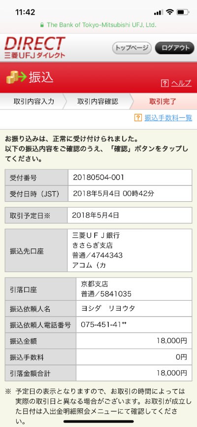 毎月恒例の振込完了画面のスクショ晒しを行いたいと思います!