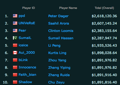 Highest Overall Earnings – eSports Player Rankings :: e-Sports Earnings