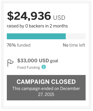 募集額$33,000のところ、達成率76%にして終了。大変残念です!