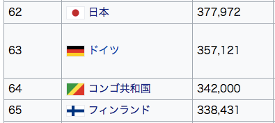 ちなみにフィンランドは約34万㎢で65位。ヨーロッパ54カ国中、10番目に広い国です。フィンランドも上位3分の1で小さくないですけど、フィンランドから見たら日本はむしろ大きい国なんですよ!