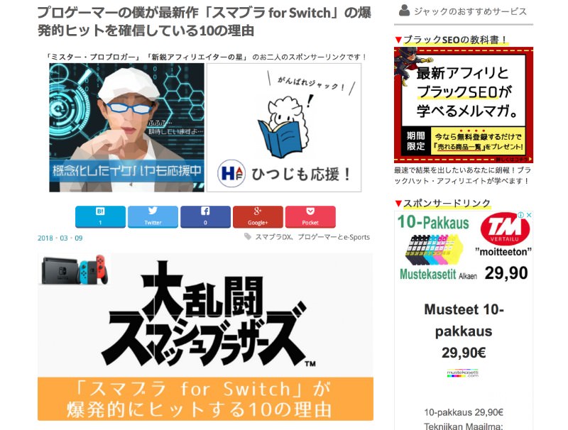 2018-03-09T21:58:14+09:00#スマブラ— スマブラブログ通知くん (@ssb_blog_bot) 2018年3月9日