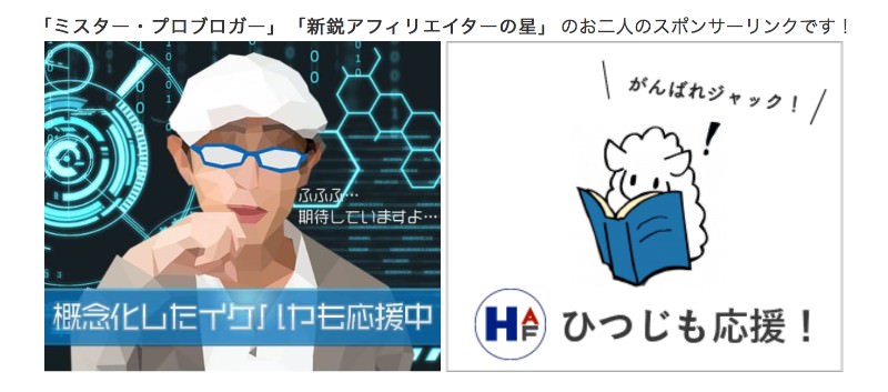 当ブログのPC版で『タイトル下』『記事下』に掲載している、イケハヤさんとひつじさんのありがたき純広告