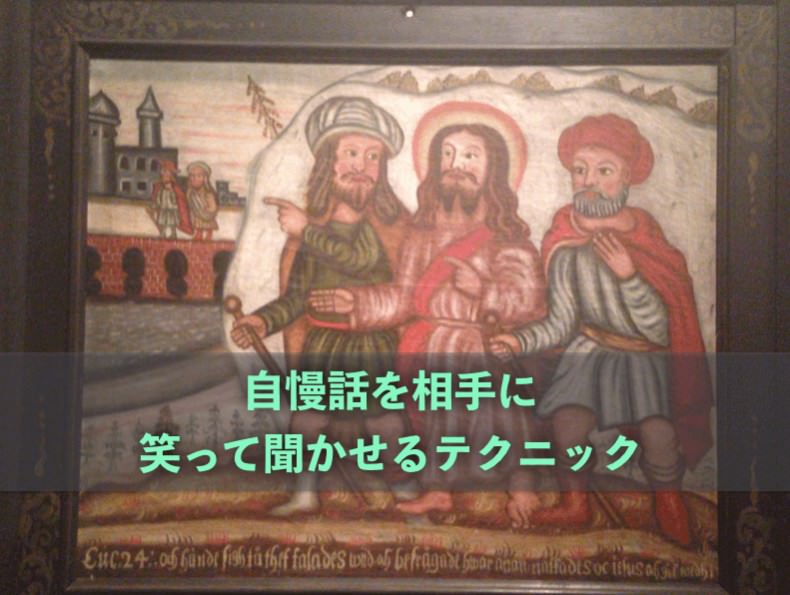 さて、本題の『完全な自慢話を笑って聞かせる超簡単な方法』ですが、それは①自慢話をするとあえて宣言すること、そして②自慢話に自虐を入れること(オチを作ること)。この2つです。「今から自慢話するで」と、あえて言ってしまうんですねぇ!そして、自虐を交えることで、相手の自慢話を聞かせれてうざいという気持ちにあらかじめ対処するんです。