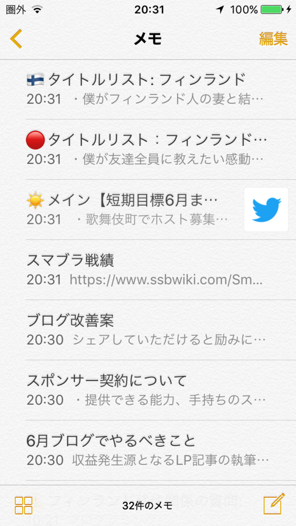 メモも基本中の基本アプリですけど、これはめっちゃ使ったほうがいいですよ!特にブロガー!記事案とか記事タイトルとか浮かんだら、ソッコーメモしときましょ。