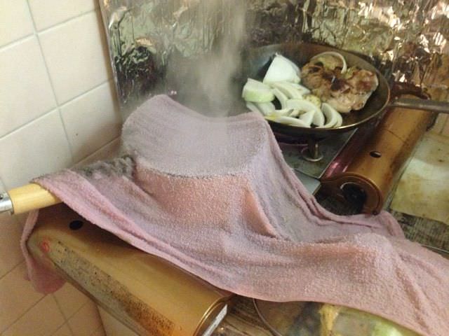 タオルを乗せたままほっとけばなんてことはない台所の図