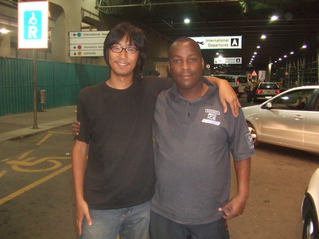 南アフリカ・ケープタウン。親切にも前日に家に泊めてくださった現地の経営者の方と空港にて。