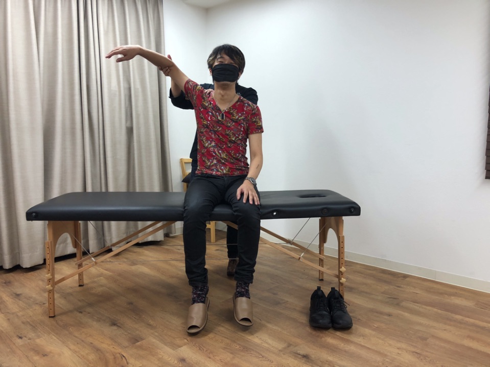 無理に腕を上げようとすると、体が逃げていくのが分かりますか?